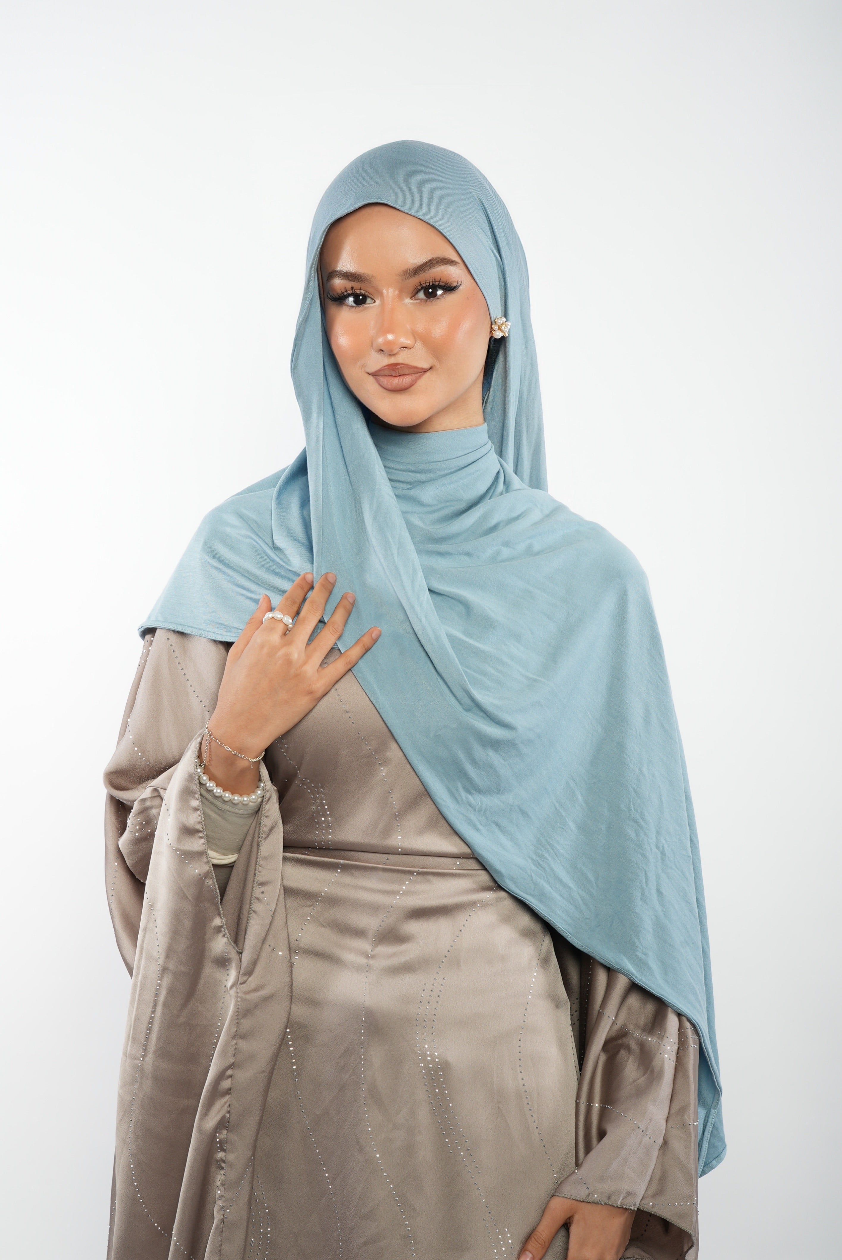 Unser Premium Jersey Hijab ist ein leichtes und atmungsaktives Kopftuch, das durch seine weiche, sanfte Textur und hohe Dehnbarkeit besticht. Mit seinem schlichten Design sorgt er für ein angenehmes und luftiges Tragegefühl, das dich den ganzen Tag über begleitet. Trotz der leichten Passform bietet der Hijab vollständige Blickdichte und bleibt nahezu faltenfrei.